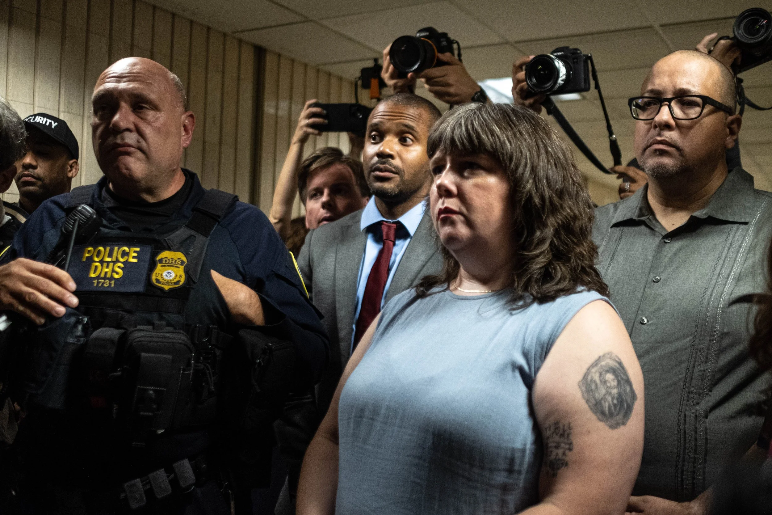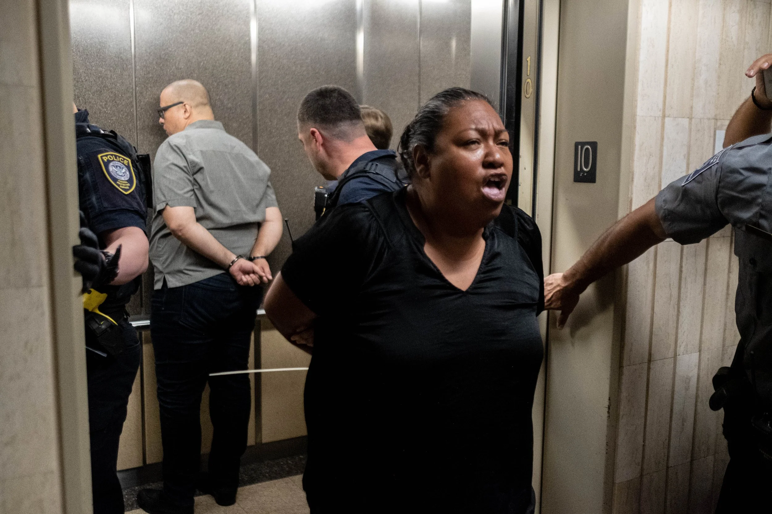 But the hallway occupation had a predictable conclusion. Federal Protective Service officers eventually moved in. Warnings were given, and the official action began. The tone shifted from testimony to detainment.
